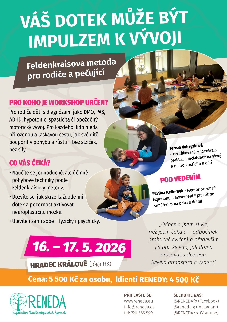 Workshop nabízí rodičům praktickou zkušenost s jemným přístupem učení pohybem, který vychází z Feldenkraisovy metody a dalších přístupů pracujících s neuroplasticitou mozku.